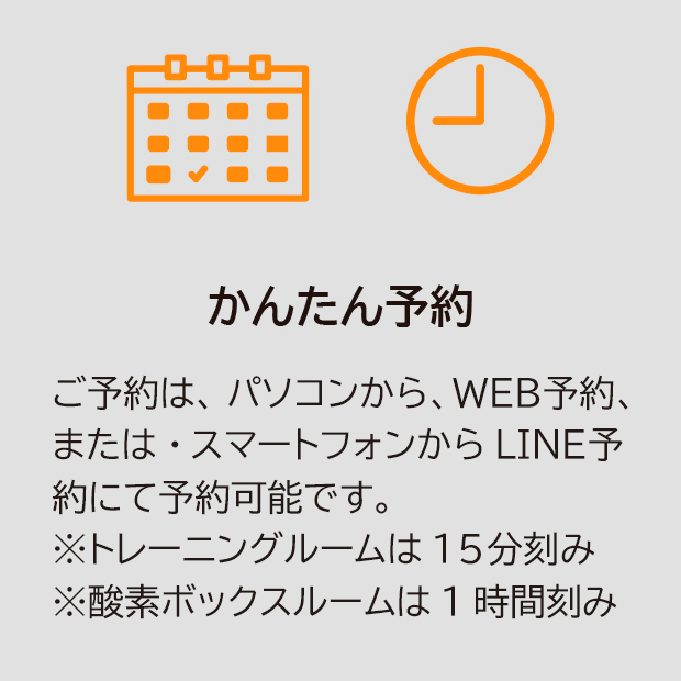 また、トレーニングルームを予約した場合、当該予約時間内において酸素ボックスを利用することはできません。